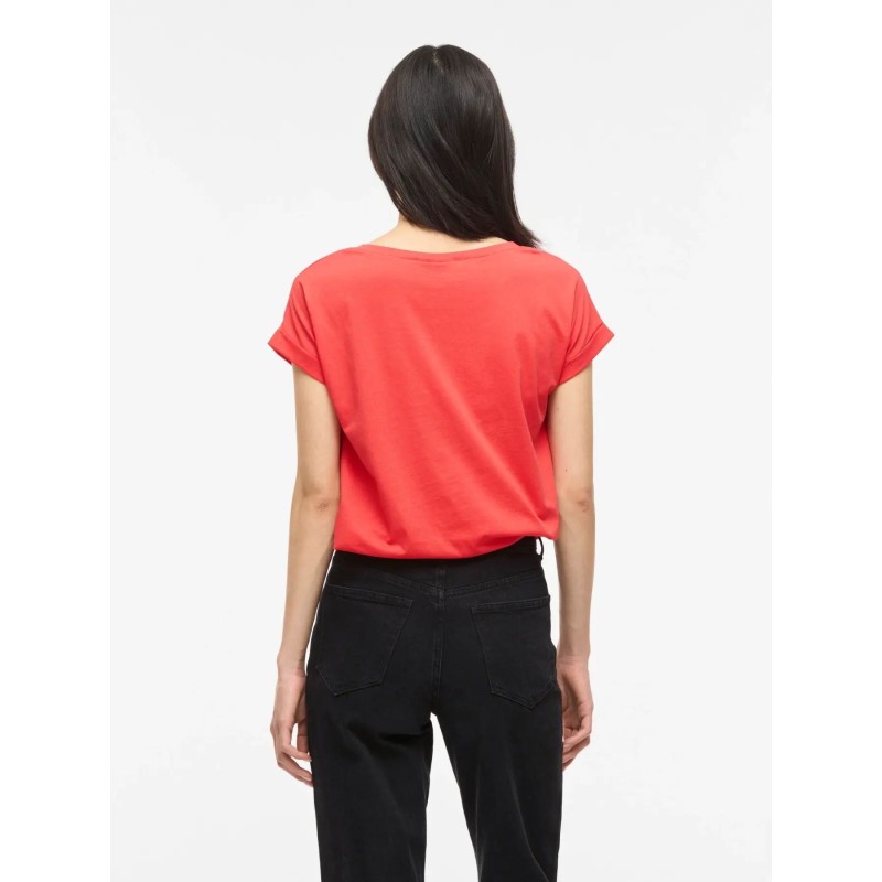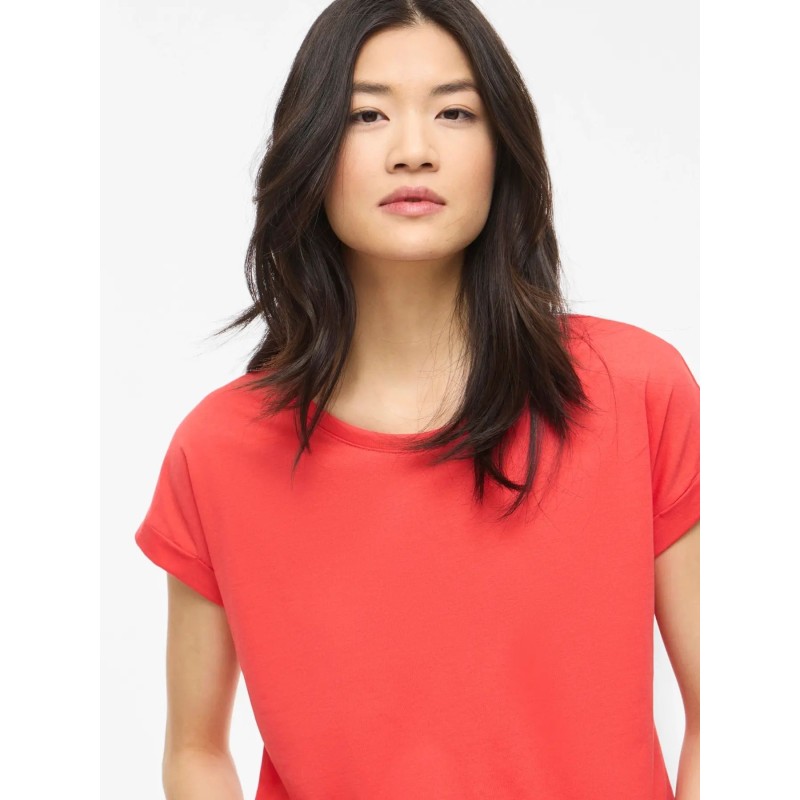 Esta camiseta básica para mujer no puede faltar en tu armario. Cuenta con un diseño atemporal de cuello redondo y mangas vueltas. Su confección incluye un 50 % de algodón orgánico, por lo que esta camiseta ofrece comodidad y transpirabilidad.