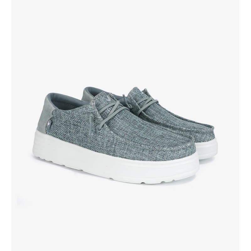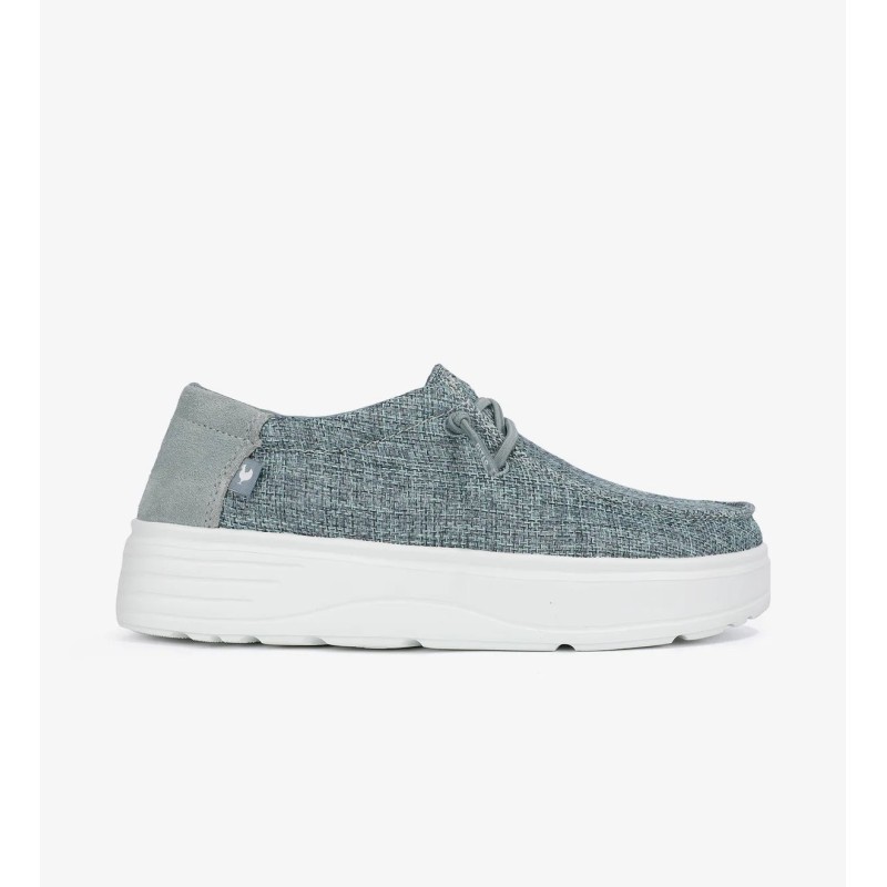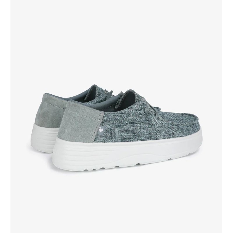 El modelo Robin en color beige de mujer es un calzado tipo wallabi. Confeccionada con una mezcla de algodón y serraje, ofrece durabilidad y un estilo moderno. Es ultraligera y flexible, ideal para un look urbano cuidado.