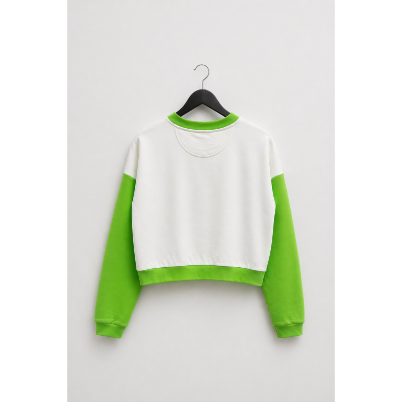 Su silueta crop y relajada aporta ese punto actual que transforma cualquier look, mientras el juego de colores crea una pieza con personalidad propia. El cuerpo mantiene un fit recto y suelto, sin entallar, lo que aporta comodidad y versatilidad en el uso diario, No necesitas combinarla demasiado: ya lo hace todo por ti.